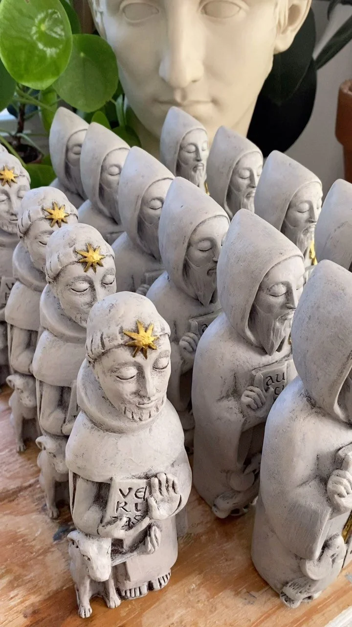 We are all intended to be holy masterpieces, over the course of our lives carefully molded in the hands of the Creator. In my sculpture at Crowned Earth Studio I am honored to imitate, in a small and far off way, that beautiful work: using clay to make saints.